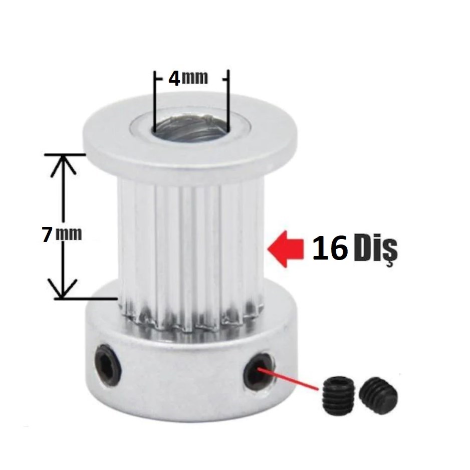 Bu kasnak sayesinde 3D yazıcınızın kayışlarını hareket ettirebilirsiniz. Alyanlı vidası ile motorun şaftına takıldıktan sonra kayışları hareket ettirmeye hazır hale gelir. Dayanıklı alüminyum malzemeden üretilmiştir GT2-6mm ile uyumludur.